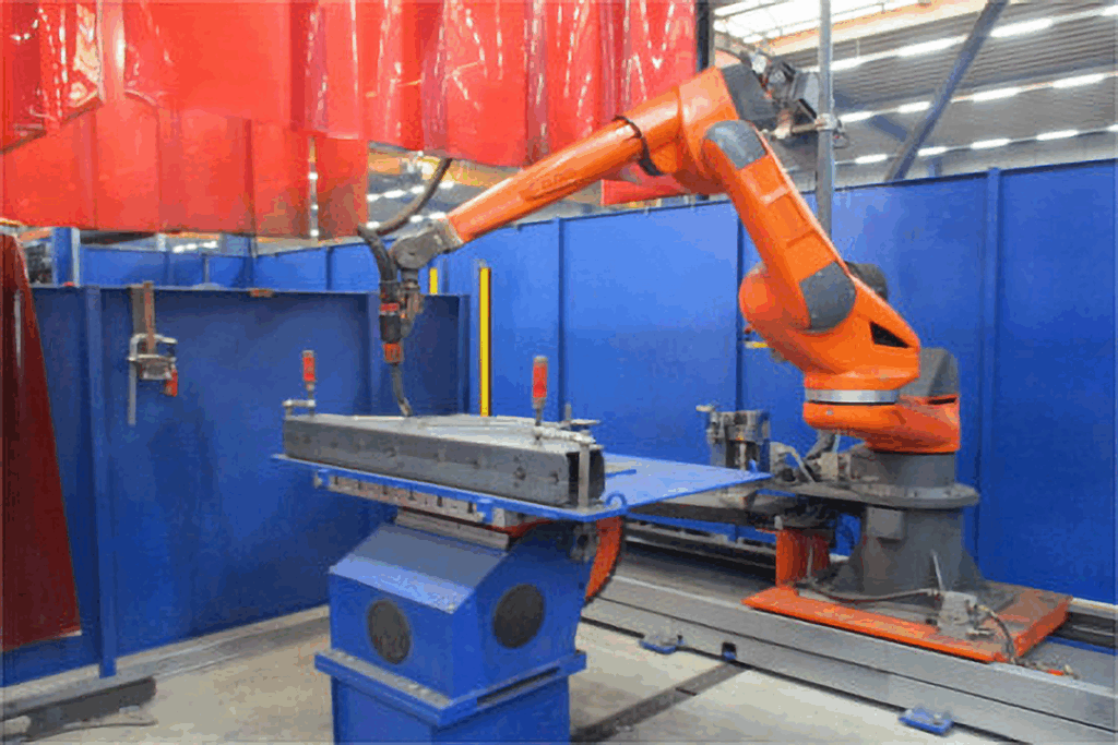 An unserem modernen Baugruppen-Roboter mit einem sechsachsigen Knickarm können verschiedene Arbeitsmittel wie Schweiß- und Schneidbrenner von bis zu 15 kg angebracht werden. So ist es möglich mehrere Prozesse mit nur einem Roboter durchzuführen.